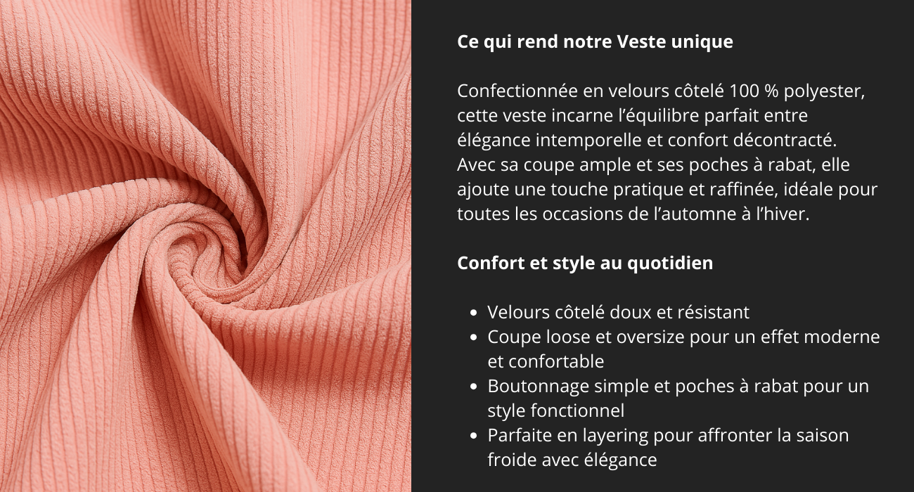 Veste Femme Oversize en Velours Côtelé – Poches à Rabat